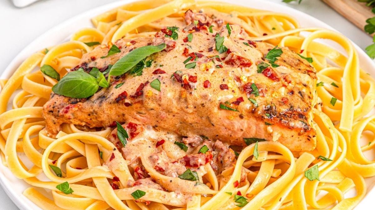 Marry Me Salmon cooks quickly in a skillet with a creamy sauce full of sun-dried tomatoes and Parmesan. I sear the salmon first so it stays flaky inside with a lightly crisp surface. Then the sauce simmers for a few minutes and coats the fish nicely. It works well for a special dinner without spending hours in the kitchen.