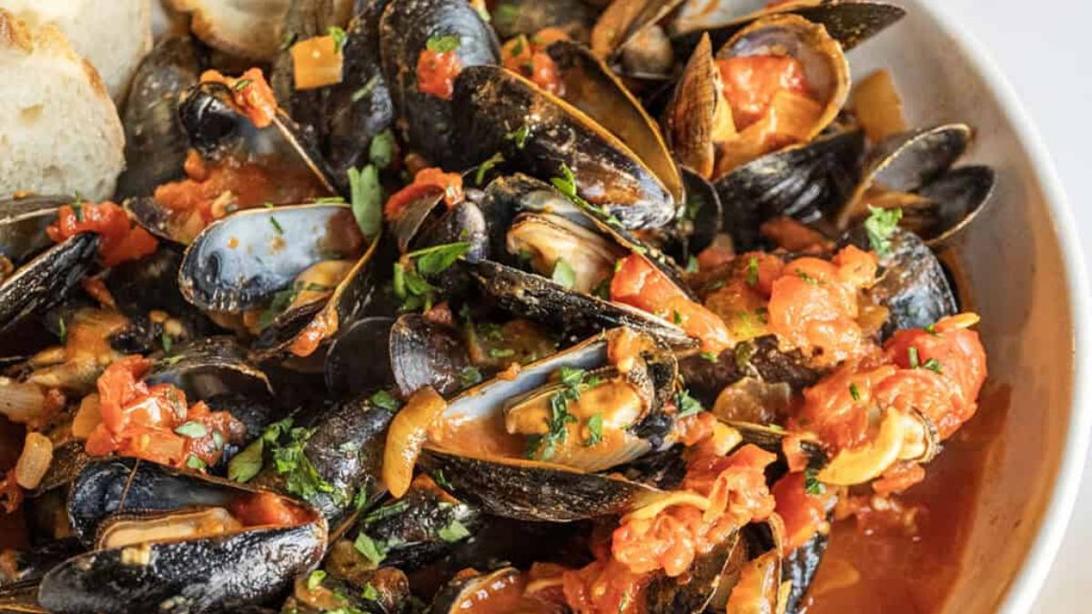 Spicy tomato sauce and briny mussels make this feel a little extra. It’s a solid pick for seafood fans who aren’t afraid of a little heat before dinner.