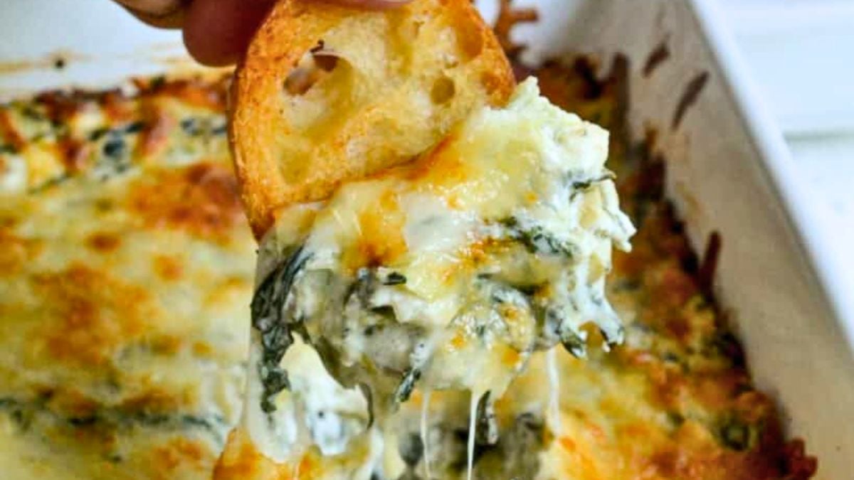 This hot dip comes out creamy and packed with cheese, garlic, and chopped artichokes. It stays thick enough to scoop easily with chips, bread, or veggies. It works well for gatherings since it can sit out for a bit without losing its texture. Among artichoke heart recipes, this one is a go-to for casual snacks.