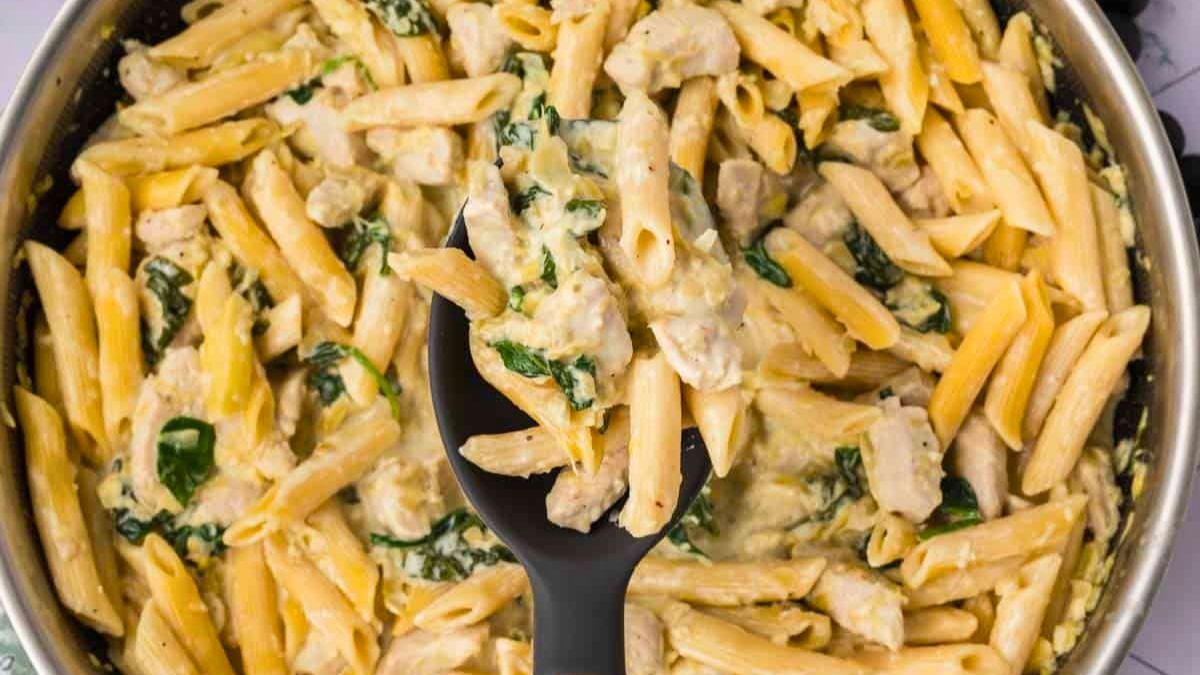 Get the Recipe: Spinach Artichoke Chicken Pasta