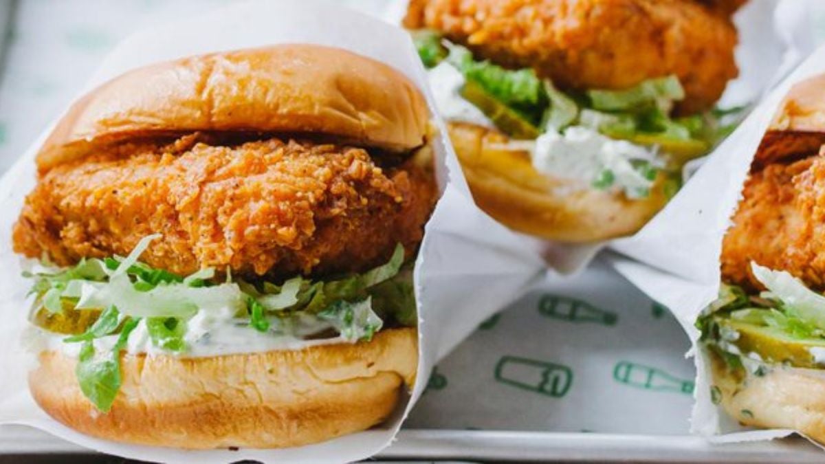Shake Shack’s Chick’n Shack leans chef-y: a cage-free chicken breast slow-marinated in buttermilk, fried crisp, then topped with shredded lettuce, pickles, and a tangy buttermilk-herb mayo. It’s less about shock value and more about balance and brightness. The bun is soft; the seasoning reads clean, not greasy. Great when you want “elevated classic” without losing the crunch.