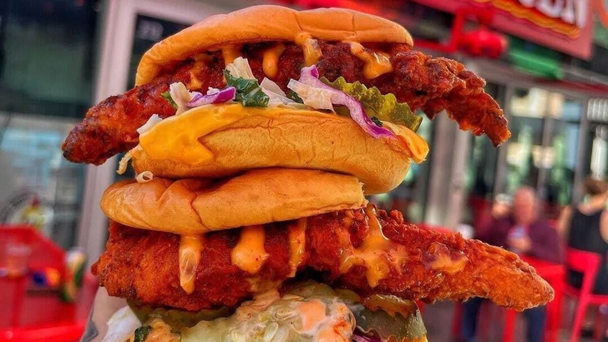 Born as an LA parking-lot pop-up and now rapidly expanding, Dave’s specializes in Nashville-style tenders and sliders with spice levels from “No Spice” to “Reaper.” The slider—sauce, slaw, pickles—delivers signature cayenne heat with a juicy center and crunchy jacket. It’s a little messy, very photogenic, and built for heat chasers. Recent growth (and a headline-making acquisition) means it’s easier than ever to find.