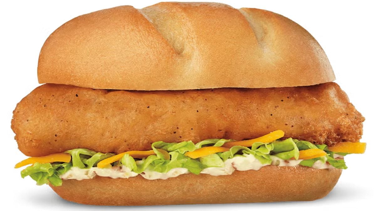 Culver’s brings a Midwestern fish fry vibe to its North Atlantic Cod Sandwich. A battered cod filet is nestled into a hoagie with lettuce, tartar sauce and cheddar cheese. The flaky fish and creamy toppings create a hearty, comforting meal that feels like it came from a family restaurant. The addition of cheese may sound odd, but it adds a subtle richness that works. Among fast‑food fish sandwiches, this one rises to the top.