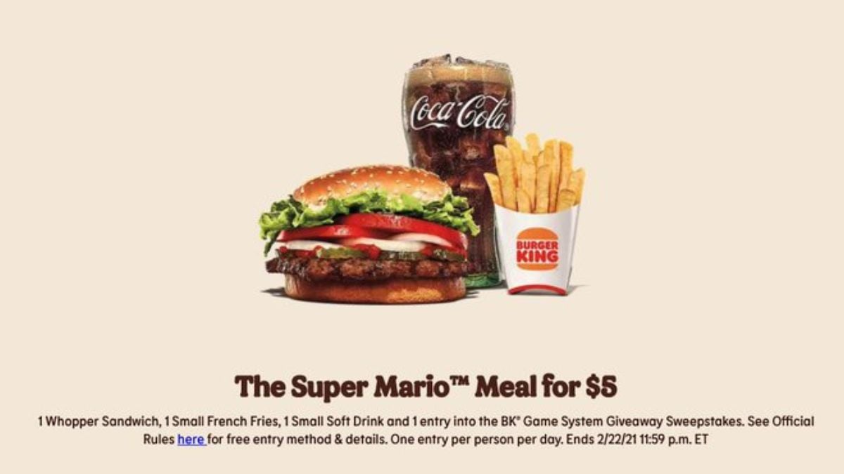 For the $5 deal, you can pick one of three sandwiches: a Whopper Jr., a Chicken Jr., or a Bacon Cheeseburger. Then you’ll also get a small fries, 4-piece chicken nuggets, and a soft drink. No customization allowed — what you see is what you get.
