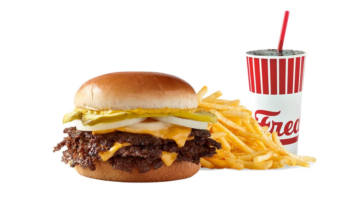 Freddy’s Frozen Custard & Steakburgers uses 100% premium beef in its patties. The burgers are known for their thin, crispy edges and rich flavor. Customers often describe their first visit as unexpectedly impressive. The chain pairs its beef-forward burgers with a nostalgic diner vibe. For many, it quickly becomes a repeat stop.