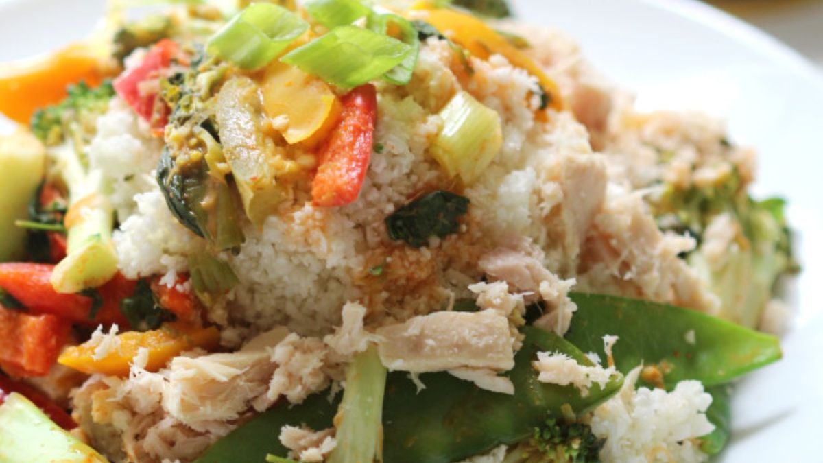 Tuna Thai Red Curry cooks quickly in a lightly spiced red curry sauce and pairs perfectly with coconut cauliflower rice. I use fresh vegetables to round out the meal and add texture. It’s gluten-free, paleo-friendly, and comes together in minutes. This curry is light, flavorful, and satisfying for a fast weeknight dinner.