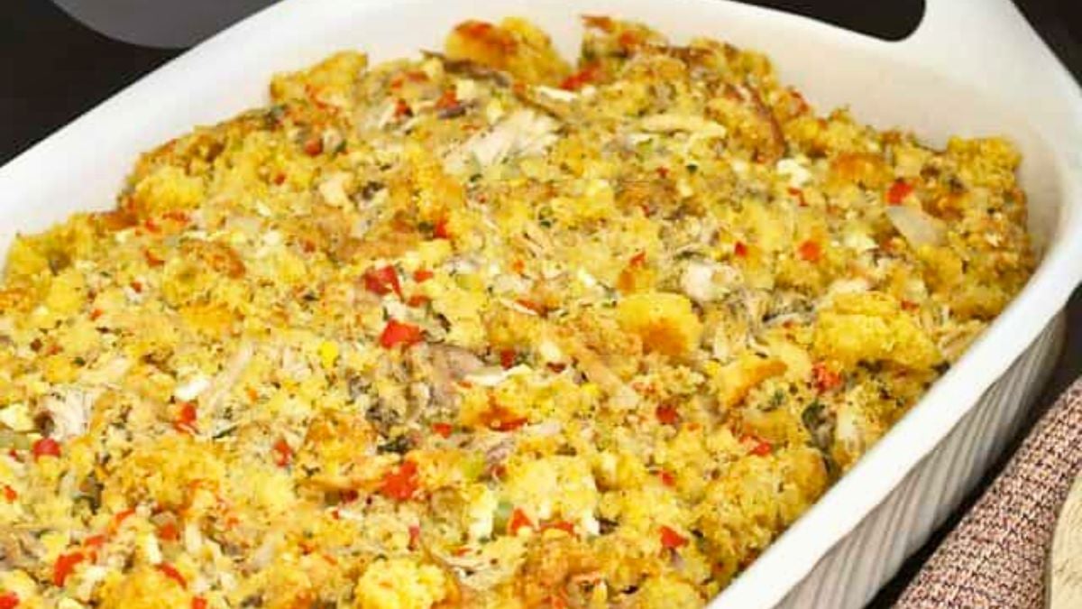 Chicken and cornbread dressing brings together tender chicken and seasoned cornbread for a classic holiday side. The recipe takes time, yet each step adds depth and richness to the dish. It holds well in the oven and serves beautifully with roasted meats. Many families prepare it for holidays because it feels familiar and comforting.