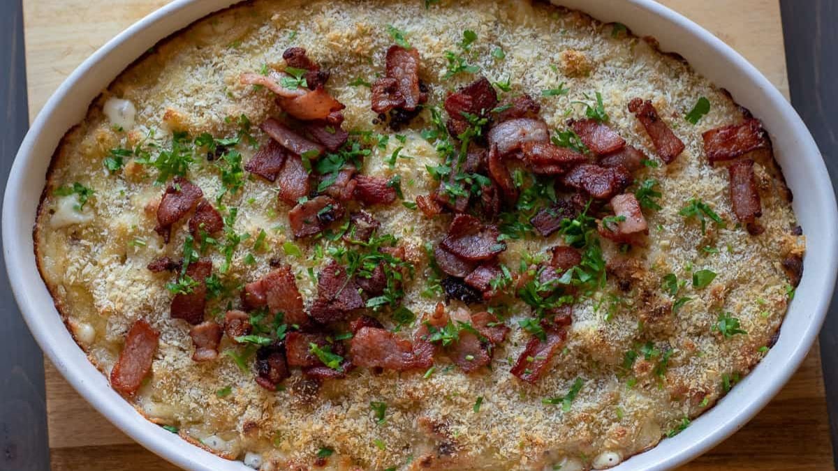 This potato casserole takes the idea of twice baked potatoes and turns it into a dish that feeds a crowd. You can use leftover mashed potatoes, which helps reduce prep time. Once baked, the top becomes lightly golden while the inside stays soft and smooth. It is especially useful for holiday meals or weekend gatherings.