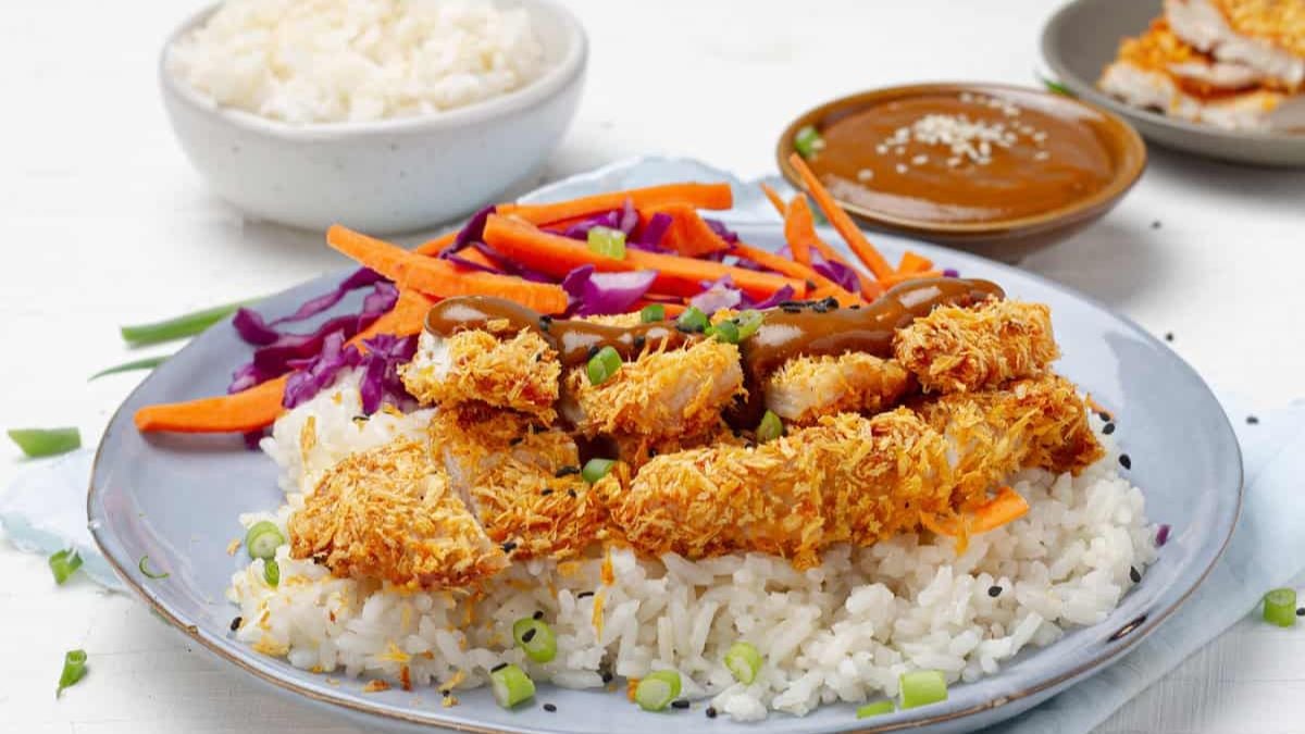 Chicken Katsu features thin chicken fillets coated in crisp panko breadcrumbs. As they cook, the coating turns golden while the inside stays juicy. With only a few basic ingredients, this dish feels approachable even for beginners. It is one of those chicken cutlet recipes that works well with rice and a simple side of vegetables.