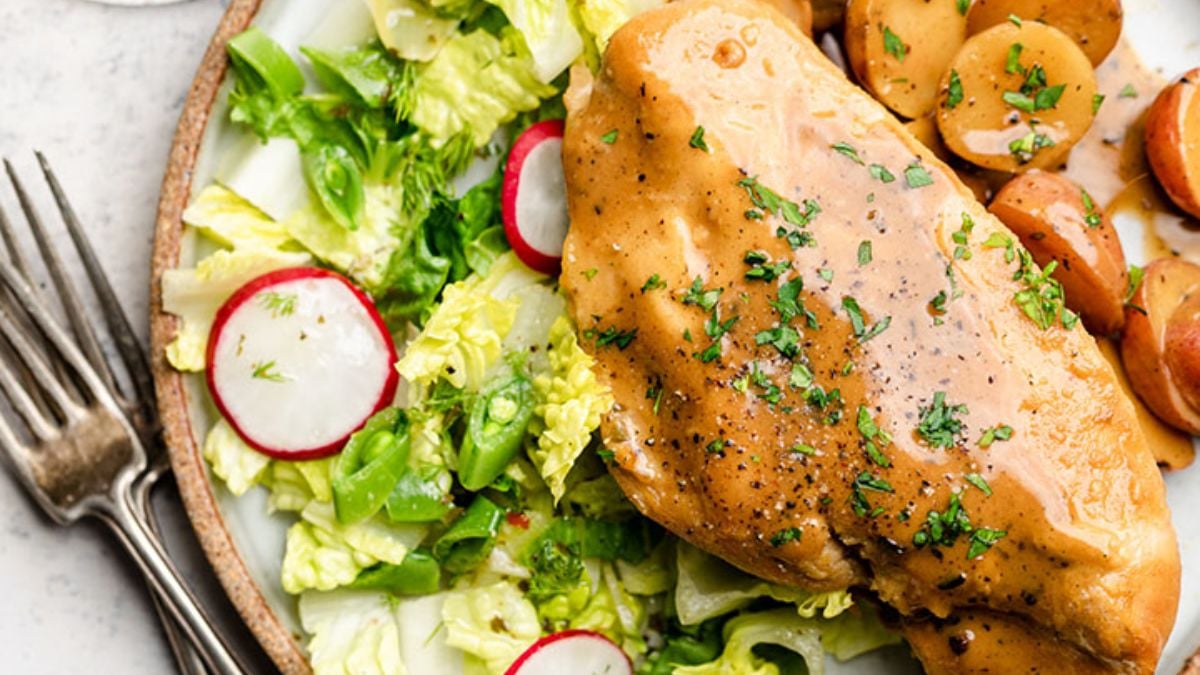 Chicken simmers in a creamy tomato basil sauce that’s both smooth and bright. Garlic and shallots round out the flavor without taking over. Everything comes together in one skillet, which means fewer dishes to clean up. Meals like this prove that chicken dinners can be easy without feeling repetitive.