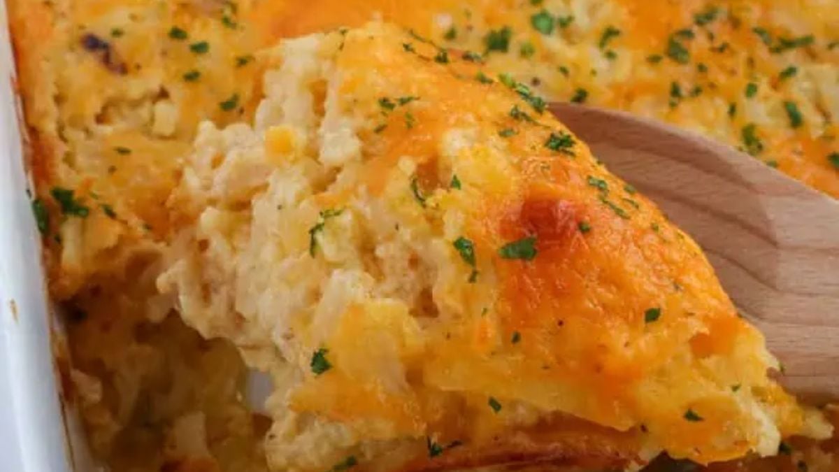 This cheesy hashbrown casserole brings shredded potatoes, onions, and garlic together with butter, sour cream, and a generous amount of cheddar. It bakes in under 15 minutes, so dinner comes together fast. Each bite is creamy with a little crisp on top, and it works perfectly for brunch, weeknight dinners, or holiday sides. It’s simple, hearty, and always gets seconds.