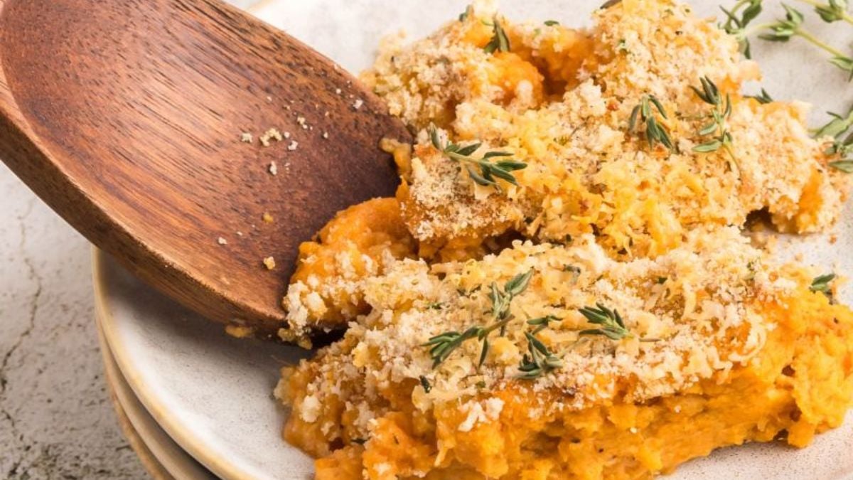 This savory sweet potato casserole uses canned yams for a quick and flavorful dish. It layers smooth, roasted sweet potatoes with herbs and cheese for a balanced side. You can prep it in minutes and bake it while you focus on other parts of the meal. It’s an easy, crowd-pleasing dish without needing marshmallows.