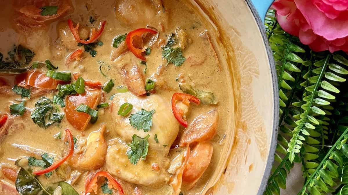This recipe pairs chicken with a coconut-based sauce that’s spiced just right. Toss in veggies like peppers, tomatoes, and carrots to bulk it up even more. From start to finish, it’s ready in under 30 minutes, which makes it easy to keep on repeat.
