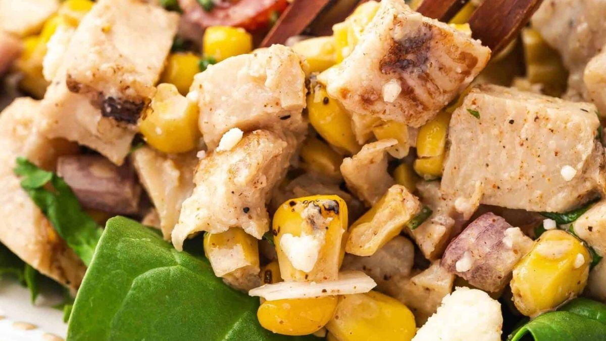 Grilled chicken, roasted corn, and cotija cheese all mix together with a squeeze of lime and a sprinkle of chili powder. The crunch and creaminess balance each other so well that you’ll want a second helping. It comes together fast, which means you can serve it at a BBQ, pack it for lunch, or whip it up for a quick dinner.