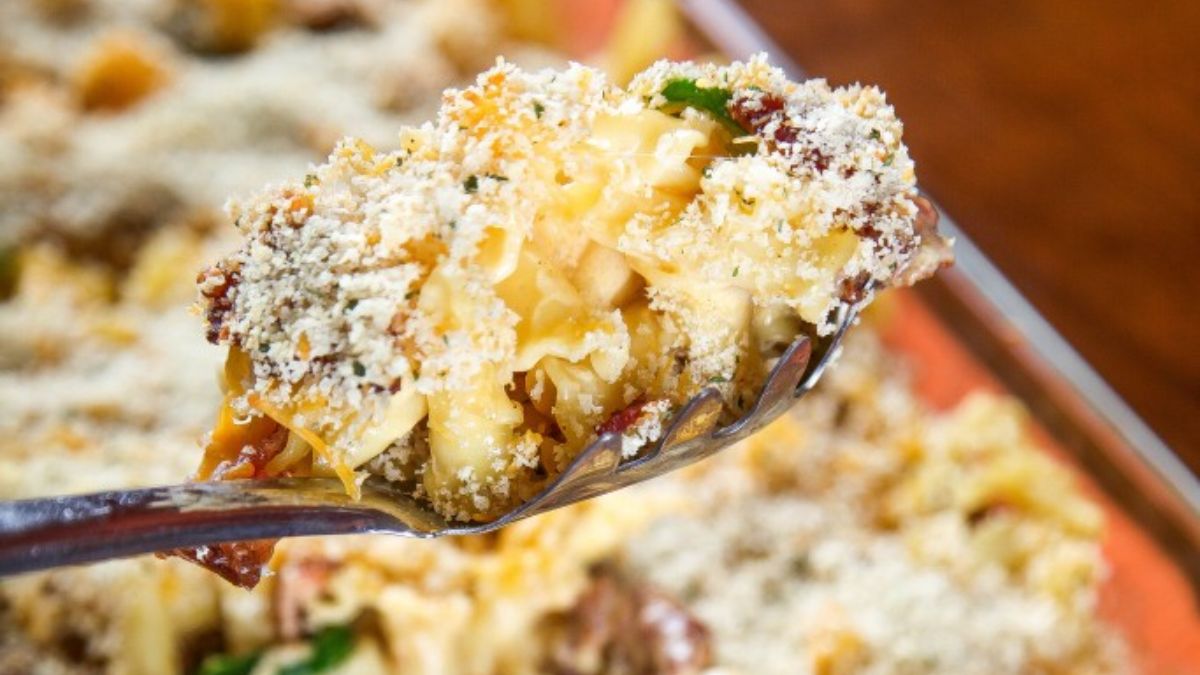 This version starts with roasted butternut squash that blends smoothly into the cheese sauce. It bakes until the top turns golden and the center stays creamy. The squash adds a warm flavor that feels right for colder months. Since it reheats well, it works for meal prep or easy weeknight dinners.
