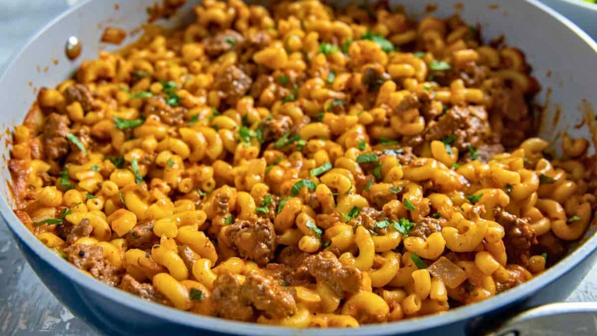 This beefy mac and cheese mixes seasoned ground beef with a smooth sauce for a filling dinner. The tomato brings a slight tang that balances the richness of the cheese. It also reheats well, so leftovers stay useful throughout the week. This one works great when you want a full meal without extra steps.