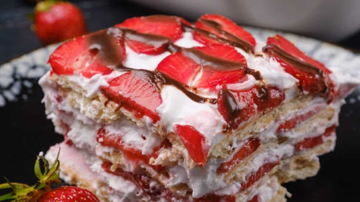 Layers of whipped topping, cookies, and fresh strawberries set into a cool, creamy dessert. It’s entirely no-bake and can be made several hours ahead without losing texture. The flavors stay balanced and refreshing, even after a day in the fridge. Among crowd-favorite desserts, this one stands out for how easy it is to prep and serve.