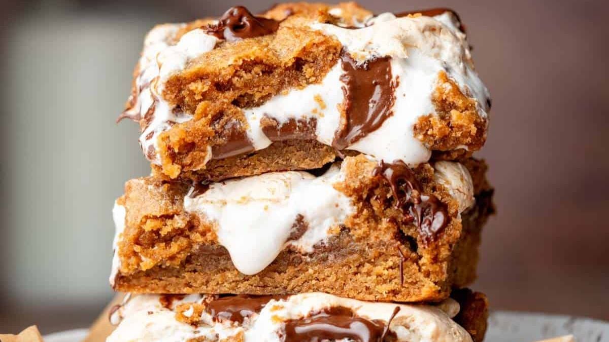 Smore Blondies combine marshmallow and chocolate in a chewy graham cracker cookie base. The layers bake into a soft, melty treat with just enough sweetness. A pinch of cinnamon in the dough keeps it interesting. They’re perfect for casual dessert or sharing with friends.