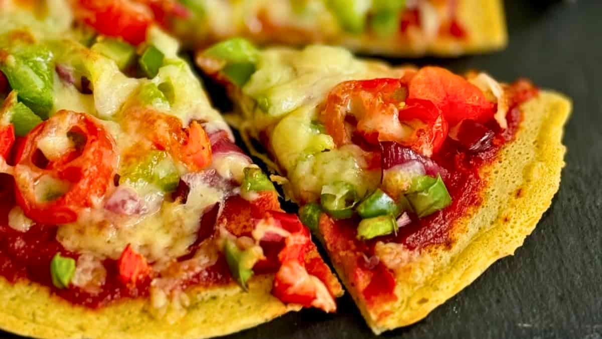 Chickpea flour pizza bakes into a firm crust that holds toppings without falling apart. The batter comes together quickly, making prep fast and simple. Vegetables, sauce, and cheese finish the dish with minimal effort. It’s a smart option when you want a quick, filling dinner.