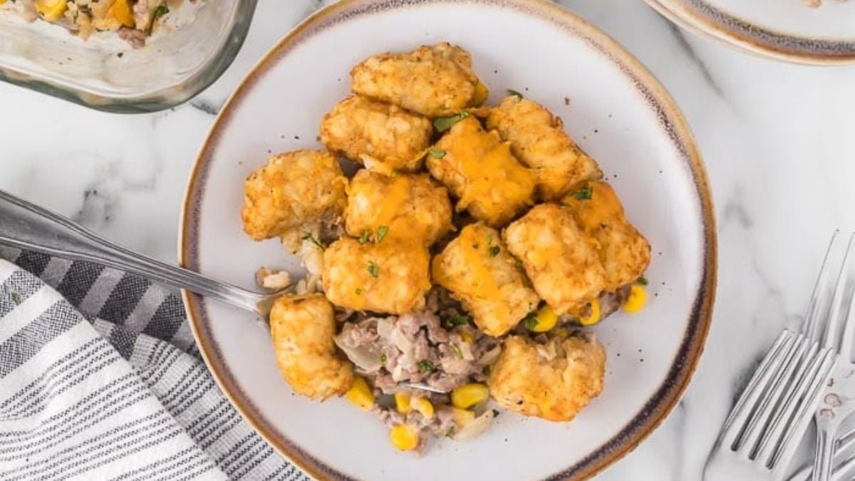 This casserole combines ground beef, corn, cheese, and tater tots into a comforting oven-baked dish. It’s easy to prepare, filling, and perfect for a weeknight meal. This recipe is a solid example of dinners done in the oven that please both kids and adults.