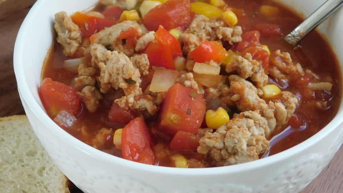 This chili keeps things light with ground chicken yet still feels hearty enough for dinner. A mix of spices builds flavor as it simmers, so every bowl comes out rich and warm. It’s one of those dump and go crockpot meals that’s perfect when you want something filling without extra work.