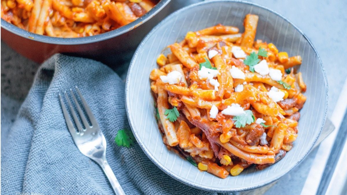 This hearty chili skips the meat but doesn’t skimp on flavor. Beans, corn, and pasta come together in one pot, making it easy to feed a crowd or stash for meal prep. A little spice keeps it cozy without being overwhelming.