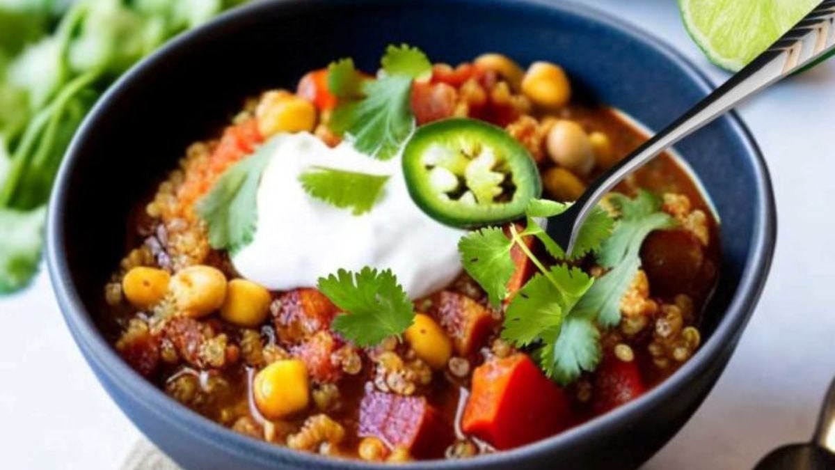 This vegetarian chili packs in beans, quinoa, and bold spices for a bowl that feels hearty enough to stand on its own. It’s a one-pot meal that’s simple to throw together and keeps well for leftovers. Even meat lovers will go back for seconds because it’s that good.
