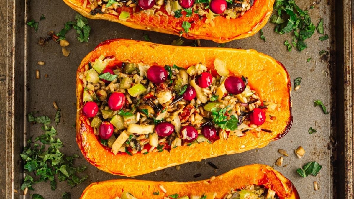Butternut squash halves are filled with a wild rice mix that includes mushrooms, apples, and herbs. It works as a vegetarian main or a festive side dish for the holidays. With its seasonal flavors, it’s a natural addition to fall dinner recipes when you want something different.