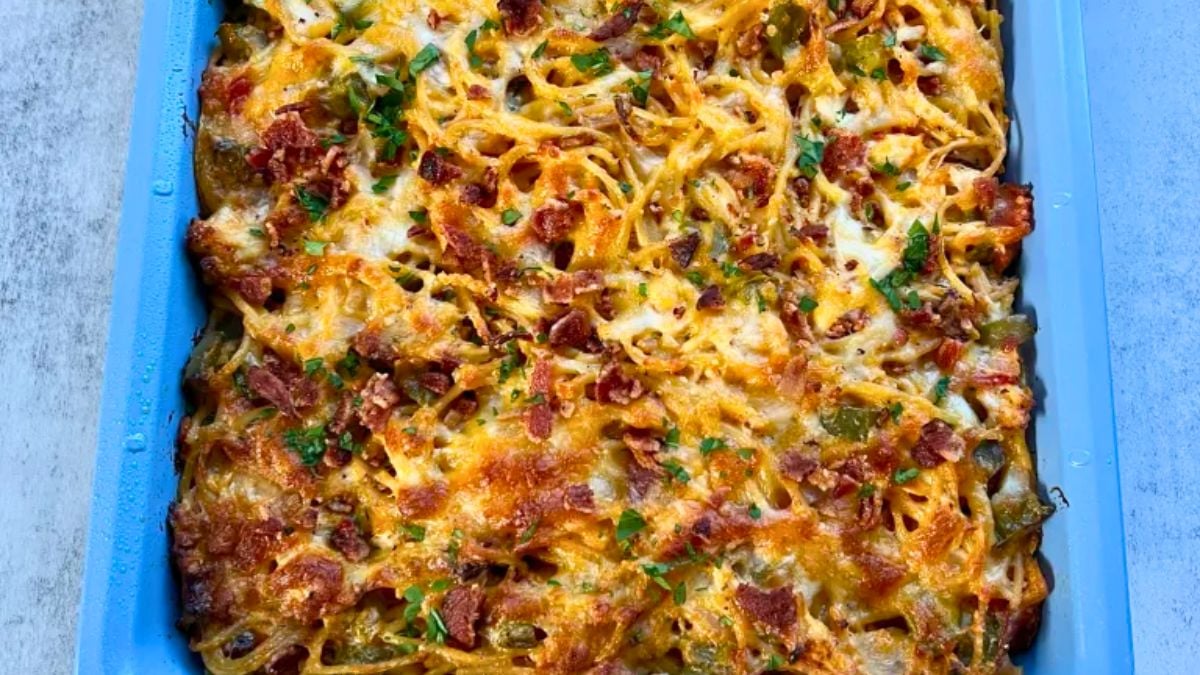 This baked chicken spaghetti delivers layers of creamy sauce, smoky bacon, and melted cheese all in one dish. It’s filling enough for dinner and leaves plenty for next-day lunches. The cream cheese adds a smooth texture that ties everything together. It’s a reliable pick for chilly nights when you want something rich and easy.