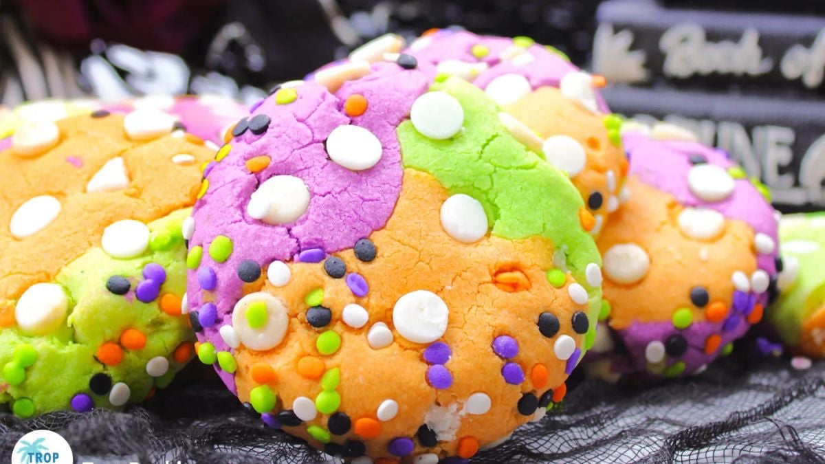 Hocus Pocus Cookies bring plenty of color and crunch to your Halloween dessert lineup. The sugar cookie dough bakes up soft, while white chocolate chips melt into the mix for extra sweetness. Bright sprinkles add a pop of fun that keeps things festive. They’re quick to prep and even better fresh from the oven.