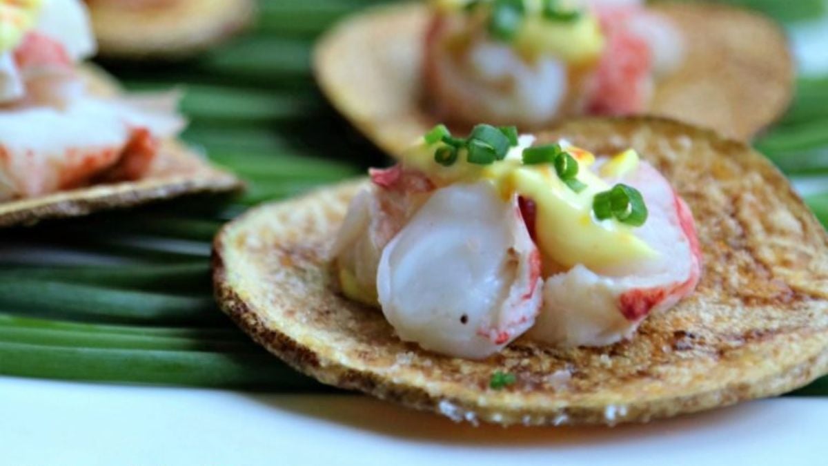 Thick-cut potato chips topped with buttery lobster and saffron aioli bring a fun, upscale touch to party snacking. Each bite has the perfect mix of crunch and creaminess, with chives for color and freshness. They’re quick to assemble but look restaurant-worthy. These easy lobster appetizers are perfect for guests who love bold flavor in every bite.