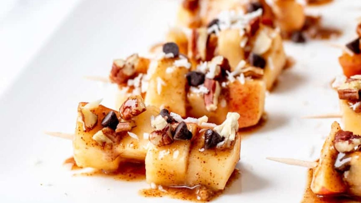 These caramel apple skewers give you all the fun of a caramel apple with none of the mess. Fresh apples are drizzled with a light caramel-style topping for a balanced, healthy snack. Add nuts or coconut flakes for extra crunch and color. They’re perfect for parties, fall gatherings, or anytime you want something sweet but easy.