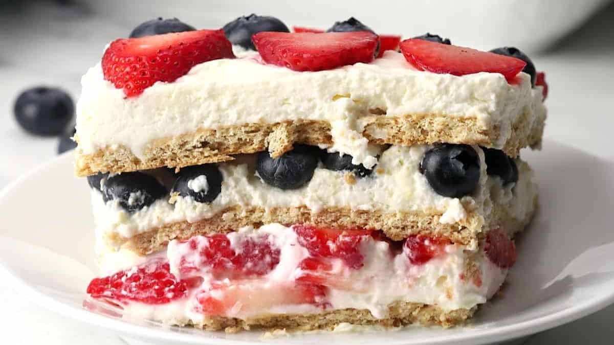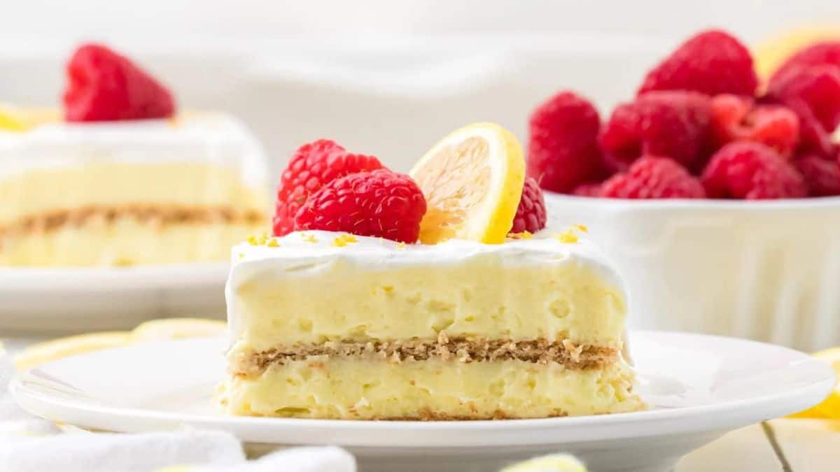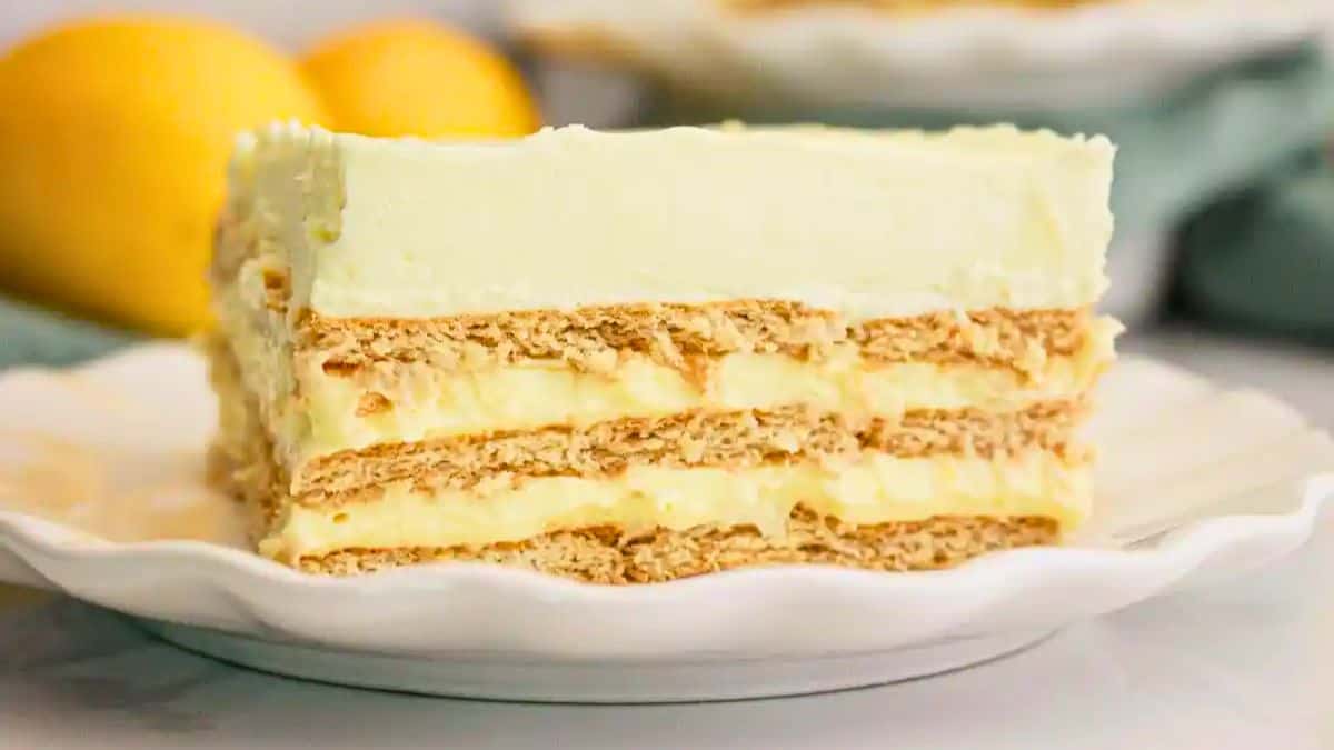 This no-bake cake layers graham crackers with lemon pudding and whipped topping for a chilled dessert that cuts clean. Let it sit in the fridge until set, and you’ll get even layers every time. You can prep it early for parties or casual get-togethers. Add this to your list of easy summer dessert recipes when it’s too hot to bake.
