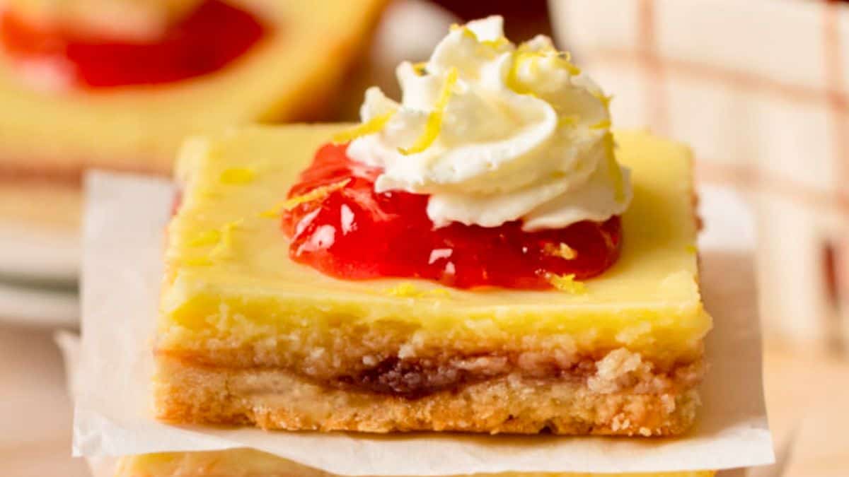 These bars have a soft base, a creamy lemon-strawberry filling, and a top that bakes into a nice finish. They cut cleanly and stay firm, even after chilling. The lemon keeps it light, and the strawberry balances the sweetness. They’re solid for spring or summer trays.