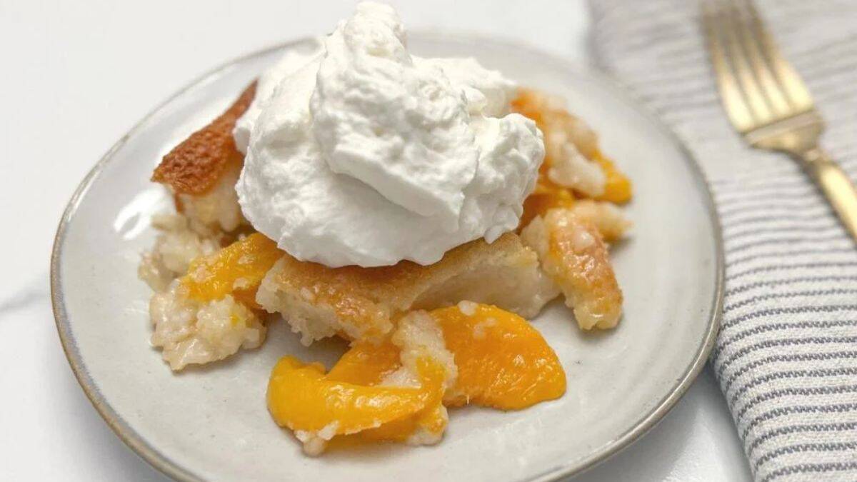 You only need four ingredients for this, and none of them require measuring cups. The peaches bake underneath a soft, golden top that somehow always turns out just right. It’s easy enough to pull off last-minute and still feel like dessert. No need for bowls or extra cleanup.