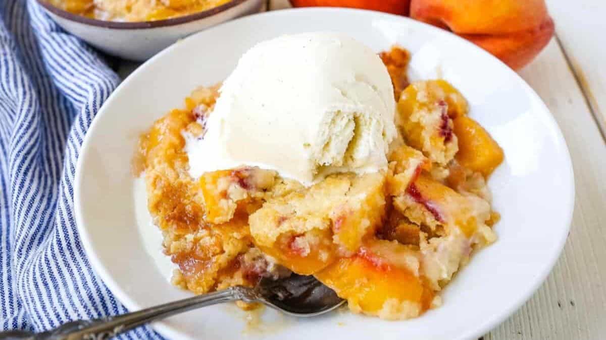 You don’t need fancy ingredients for this version, just toss it together and bake. The peaches bubble up under a soft topping that turns golden in the oven. Serve it warm if you can, but leftovers also work cold. It’s even better when fresh peaches are around.