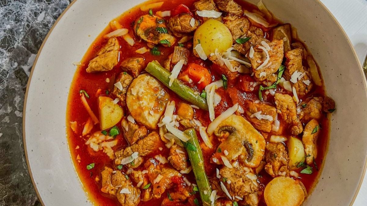 This tomato pork stew simmers slowly until the pork turns tender and rich. Meanwhile, the vegetables soak up the tomato base without falling apart. Since the batch runs generous, it works well for feeding a crowd or saving extras.