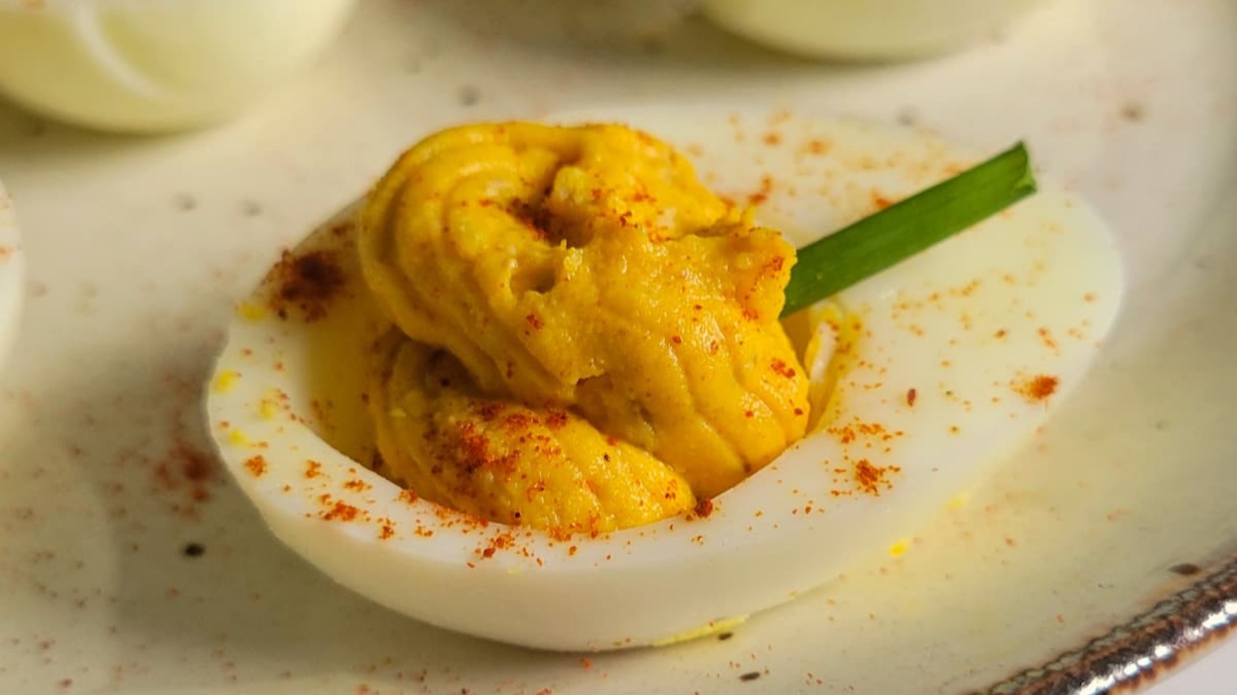 These deviled eggs bring a light pumpkin color and a gentle fall vibe without changing the classic flavor too much. I liked how the spice blend added warmth without taking over the egg. They look cute on a platter and always start conversations. Set them out early because they disappear fast.