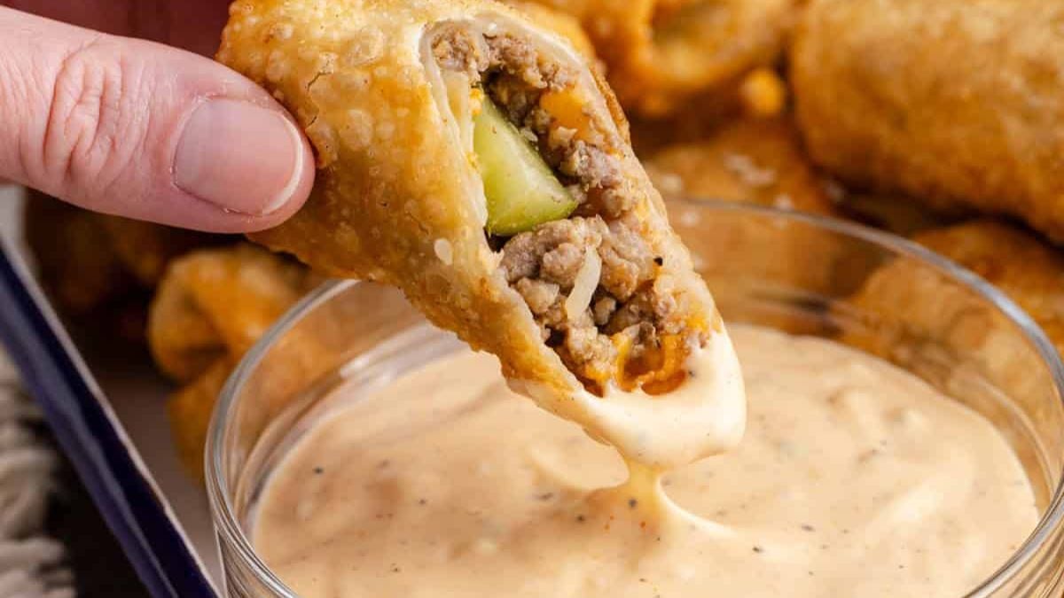 These egg rolls wrap seasoned beef, cheese, and pickles into a crisp shell that stays firm after frying. They come together faster than most appetizers and cool to a good eating temperature quickly. You can pair them with a simple dipping sauce to round out the flavor. They hold well at parties and disappear quickly once set out.