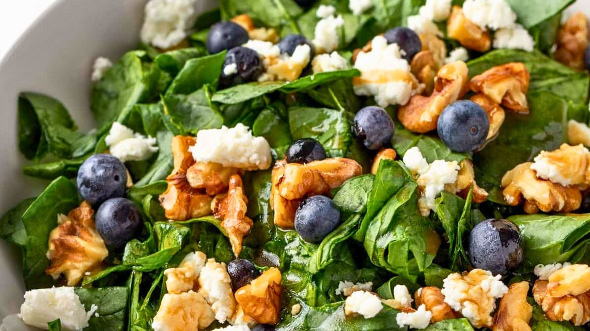 This salad mixes sweet blueberries with creamy goat cheese for a nice contrast. The toasted walnuts add crunch, while the spinach keeps it light. Then, the maple balsamic dressing pulls everything together without feeling too heavy. It’s a solid pick when blueberries are in season and you want something quick.