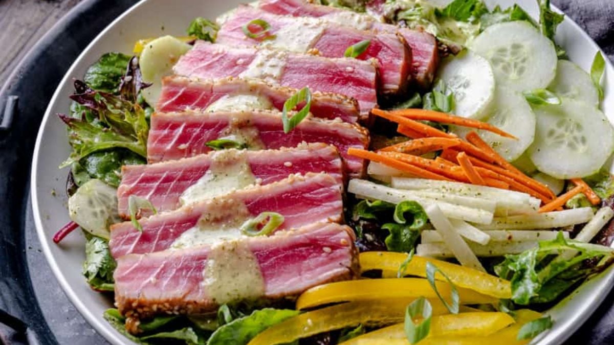 This salad layers lightly seared ahi tuna over crisp greens for a meal that feels a bit different from the usual. The sesame crust adds texture, while the dressing brings in a mix of citrus and ginger. It works well as a light dinner or even a starter for a bigger meal. Keep the tuna slightly rare to get the best texture.