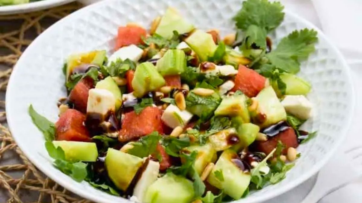 This Watermelon Salad keeps things cool and crisp, which works well on hot days. Juicy melon, fresh herbs, and crunchy cucumber balance each other nicely. The feta and pine nuts add just enough contrast without taking over. It’s easy to toss together, so it fits right into quick meals or casual get-togethers.