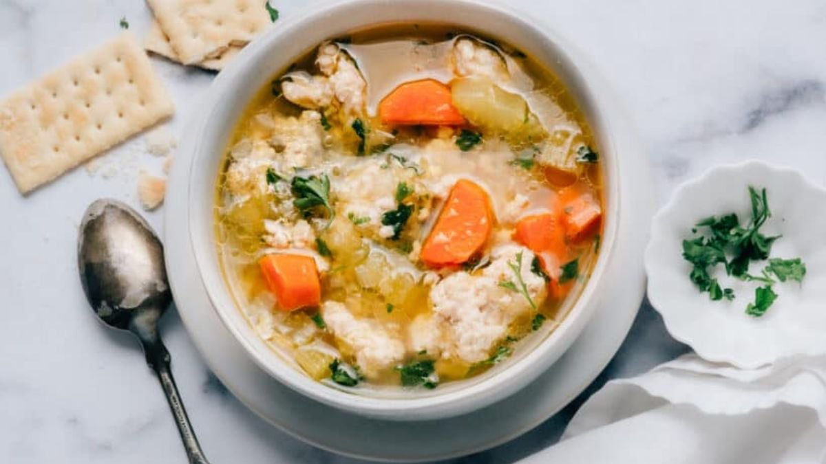 Spaghetti squash soup blends tender squash strands with ground chicken in a light broth. The chicken cooks quickly and absorbs the seasoning well. Leftovers reheat smoothly for next-day meals. It’s a smart option when ground chicken dinners need to stay lighter but still filling.