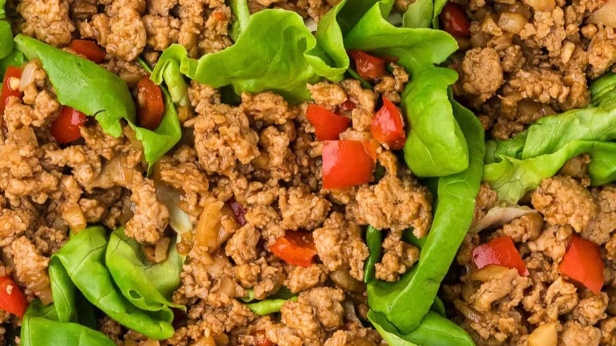 Ground chicken is seasoned with ginger, garlic, and water chestnuts, then served in crisp lettuce cups. The dish is fresh, fast, and perfect for a low-carb dinner. It’s one of the quickest ground meat dinners to get on the table in 15 minutes.