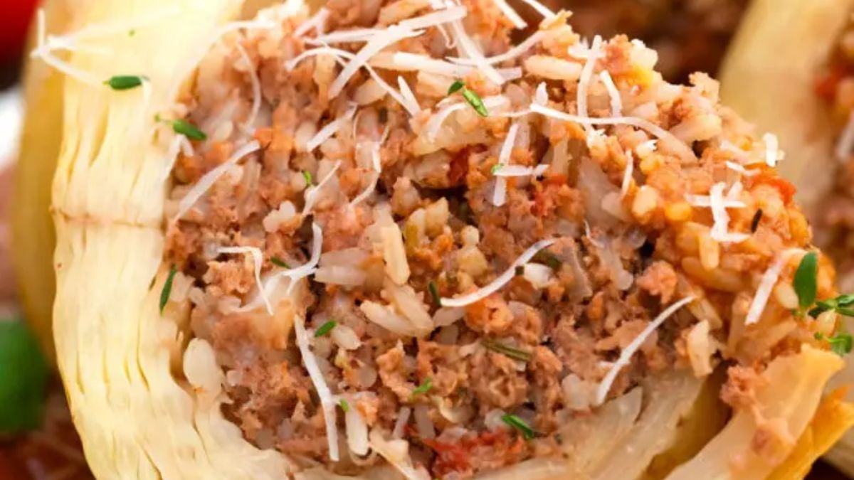 Whole cabbage leaves wrap around a savory mix of ground beef and rice, then simmer in a herb-filled tomato sauce. Each roll stays intact, so plating looks clean and appetizing. Sprinkle parmesan on top before serving for a comforting, hearty meal. This recipe works for both family dinners and casual gatherings.