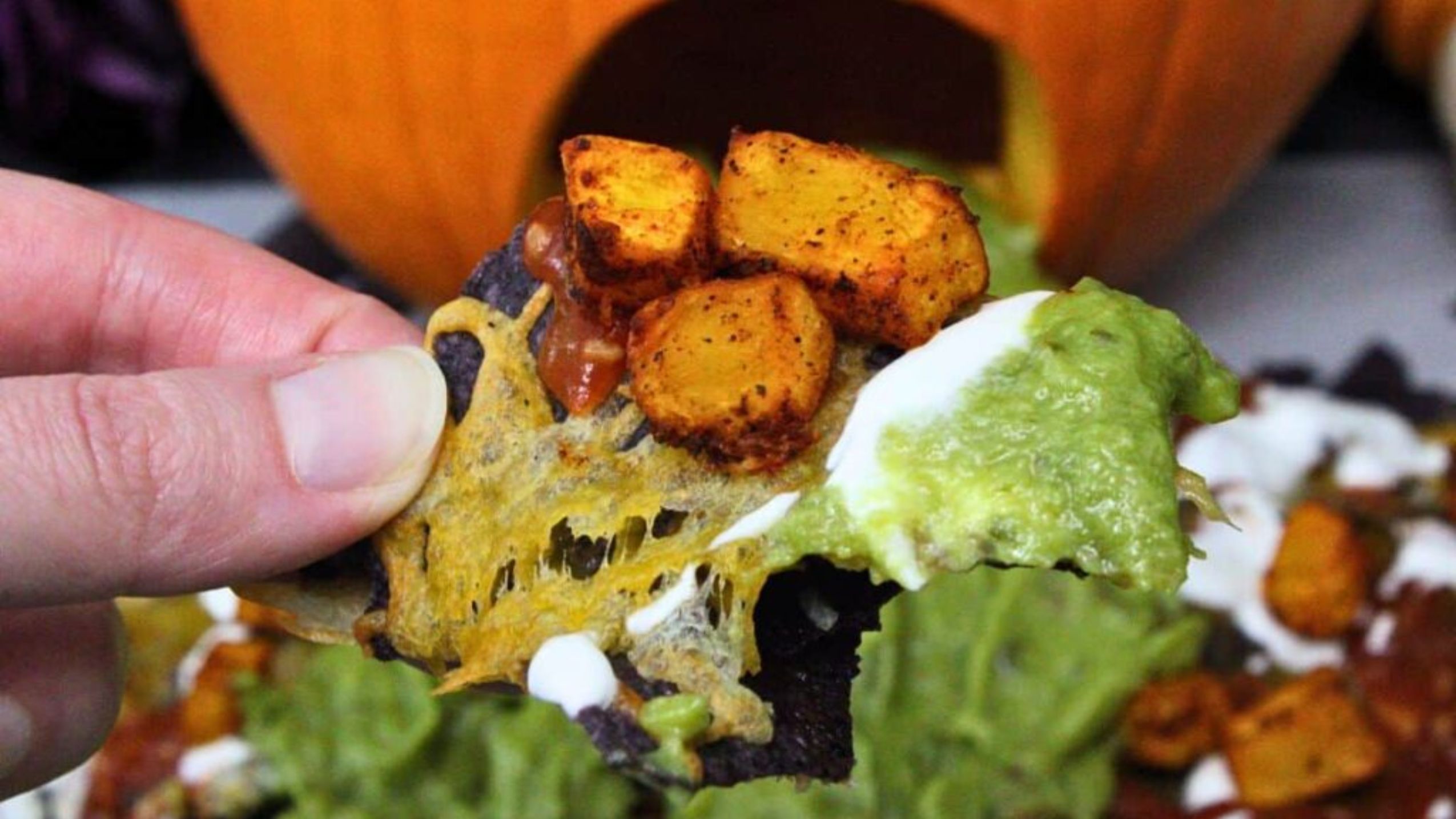 These nachos come loaded with cheese, beans, and roasted pumpkin for a seasonal spin. Using the air fryer keeps the chips extra crisp while cutting down on prep time. You can serve them right in the basket for easy sharing. It’s a fun way to add something warm and cheesy to your party menu.