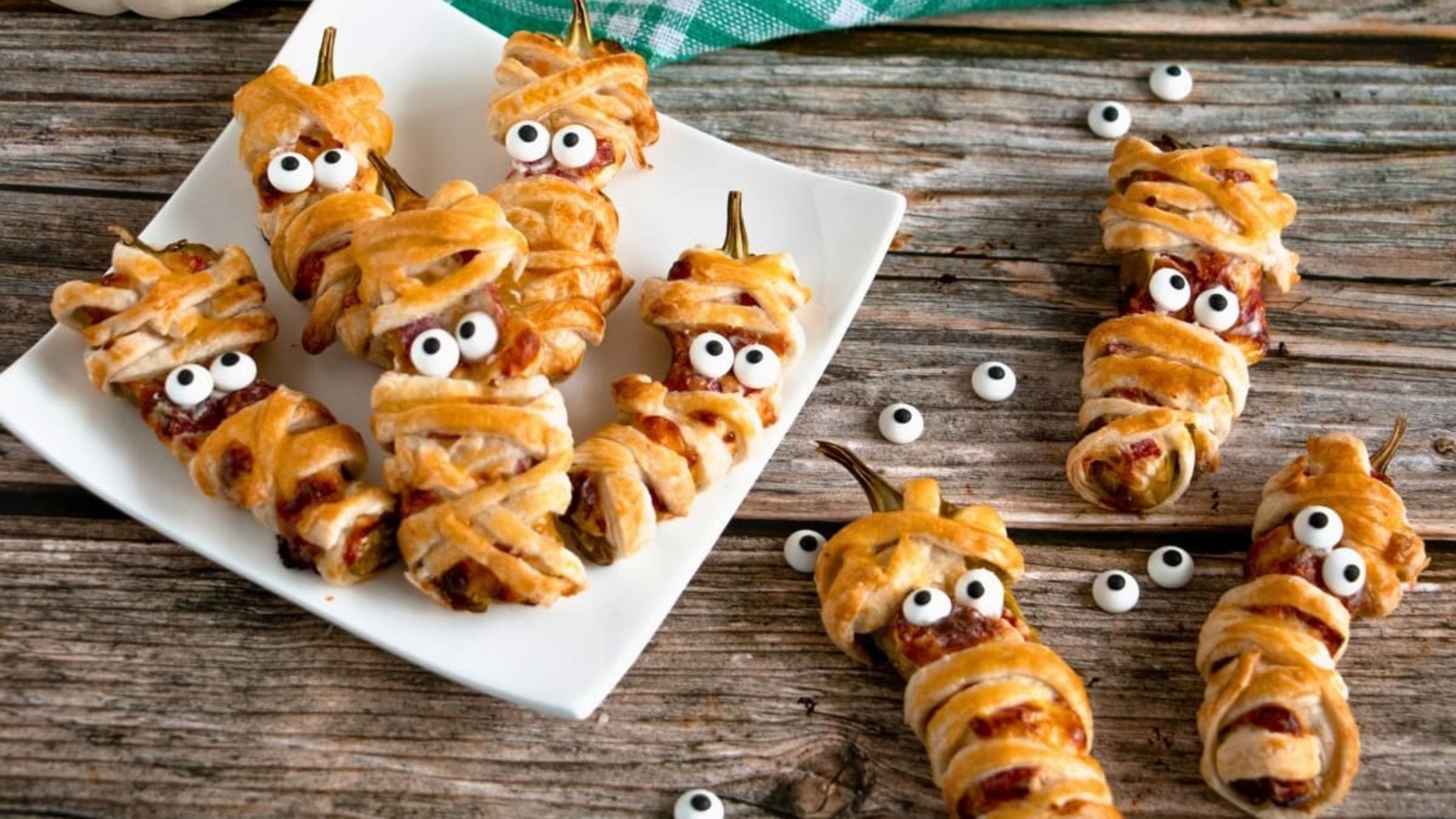 These jalapeno poppers are wrapped in thin pastry strips to look like tiny mummies with a creamy, cheesy center. They bake up crisp, slightly spicy, and just the right amount of playful. The process is simple enough to do with friends or kids. Try them as one of your go-to halloween-inspired appetizers for any spooky get-together.