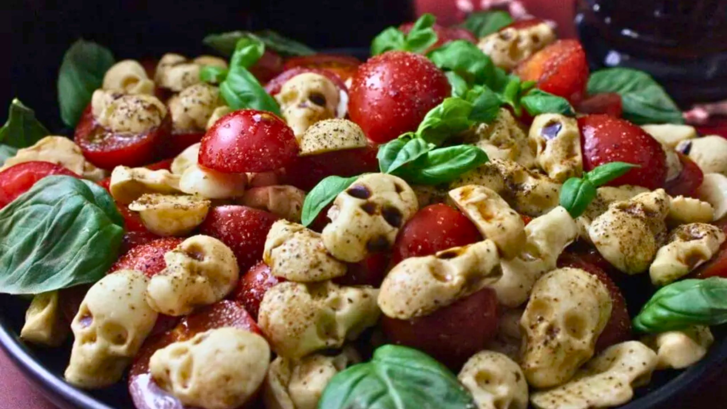 This salad keeps the classic tomato, mozzarella, and basil combo but shapes the cheese into tiny skulls for a Halloween effect. The presentation is simple but clever enough to catch attention at first glance. Drizzle with balsamic glaze just before serving for an easy finish. It’s a smart choice when you want something festive but still fresh.