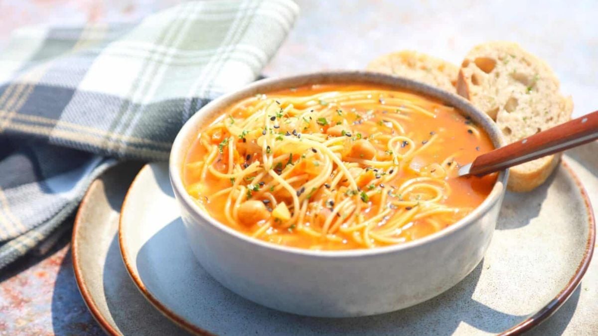 Chickpea Noodle Soup is a quick, one-pot vegan meal with tender pasta, chickpeas, and fresh vegetables. It cooks in about 30 minutes, making it perfect for busy nights. The broth is light but flavorful, keeping the soup hearty and nourishing. A squeeze of lemon at the end brightens up the flavors.