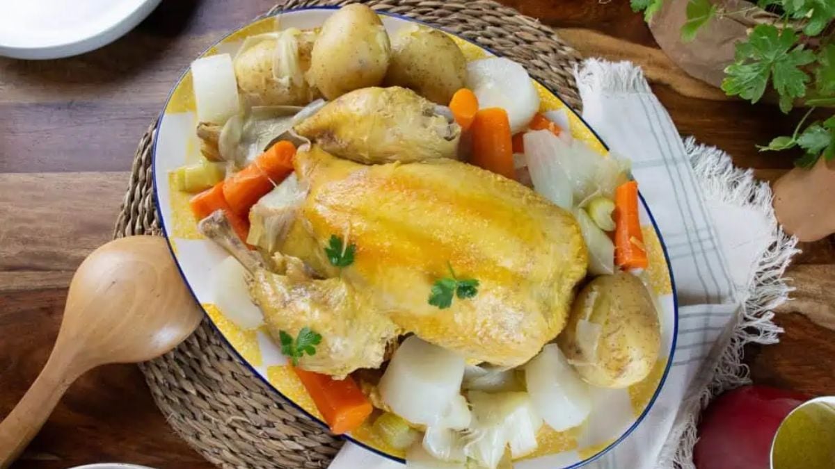 Poule au Pot features a whole chicken slowly simmered with vegetables and herbs for a warming, one-pot meal. The broth becomes rich and aromatic as the chicken cooks. It’s perfect for cold evenings and pairs well with crusty bread. You can use leftovers for sandwiches or a quick chicken salad.